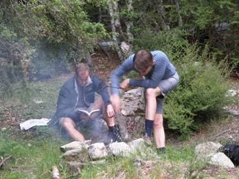 A good descent was aided by a couple of cautious abseils and we were soon all trying (and failing) to glissade as fast as Austrians do. Michael decided that winning the skiing meant that he would be in charge of the fire. Thankfully Dmitri was there to give helpful suggestions.