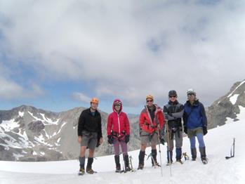 The wind was actually increasing and the summit seemed to be shedding loose rock onto our climbing path at a very alarming rate. We decided that we would have to climb in spring. Never the less we bagged Greenlaw Col and had lunch.