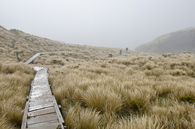 Sunday the weather was supposed to clear so, despite still not getting so much as a glimpse of you we headed up just in case. But true to form Taranaki, you proved elusive. At first we had no rain, then drizzle arrived followed by a southerly breeze, pretty tame by your usual standards but cool nonetheless. 500m above Kapuni Lodge, at Syme Hut we were philosophical as we read of the splendid views of you on offer on Friday. Swallowing hard we made the decision that the promise of experiencing your charming company could lure us only so far in the thick cloud and strengthening southerly. Summiting would have to wait for another day.