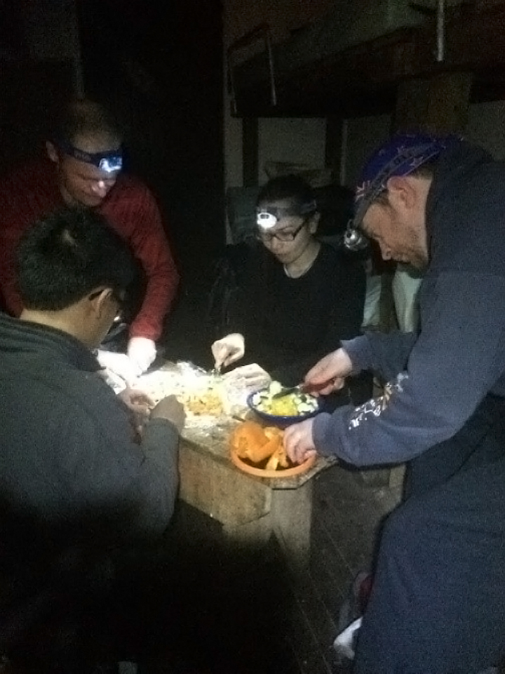 The bridge close to the hut was fantastic and we crossed it as daylight was fading fast around 5 pm. Cow Creek Hut is a sweet six bunk hut with no water (river/bucket excursions required). A fire was made quickly and the hut became very cosy. Dinner was a true team effort and lots of fun.