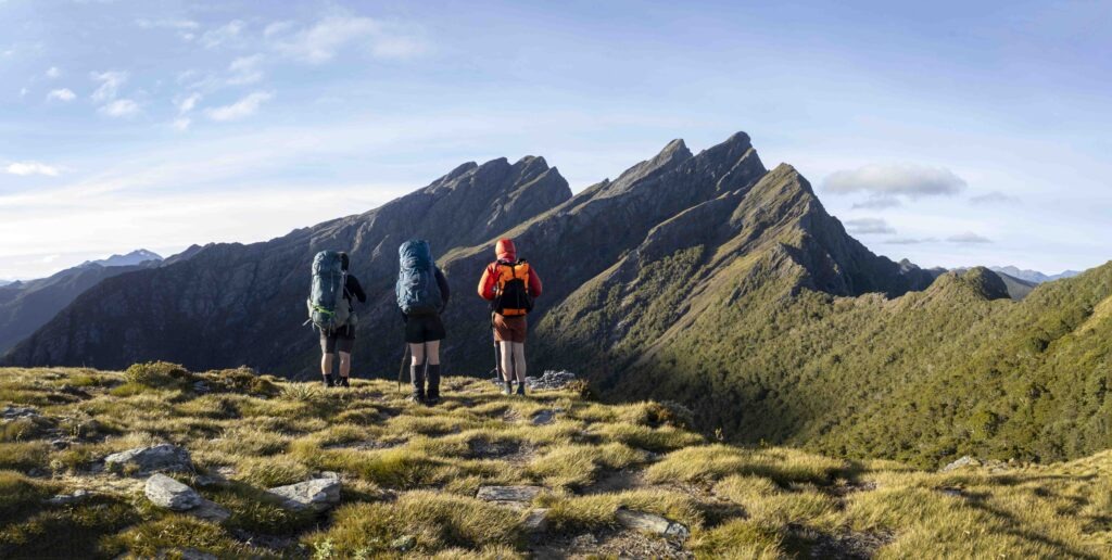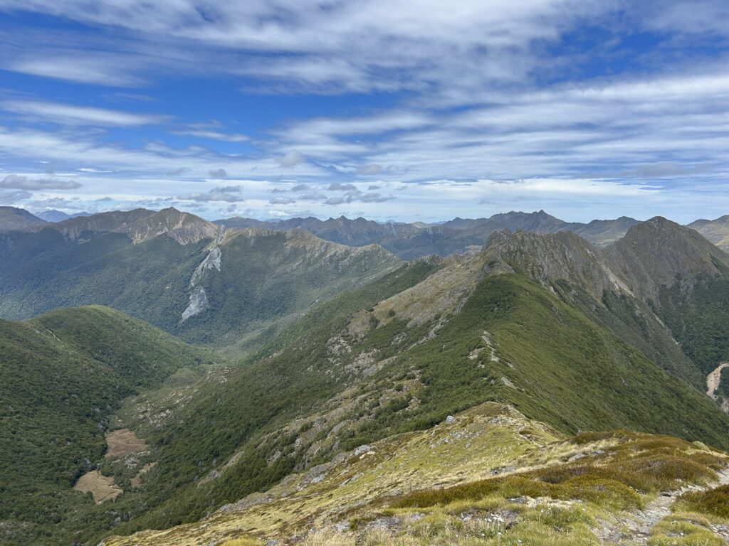 Cairned route from Lonely Lake Hut to Fenella Hut is fairly uncomplicated ridge travel but needs good weather as its almost exclusively out of the bush line. Takes about six-eight hours. There is a scree slope to navigate below Kakapo Peak. From Fenella Hut out to the Cobb Valley it is an easy four-hour walk.