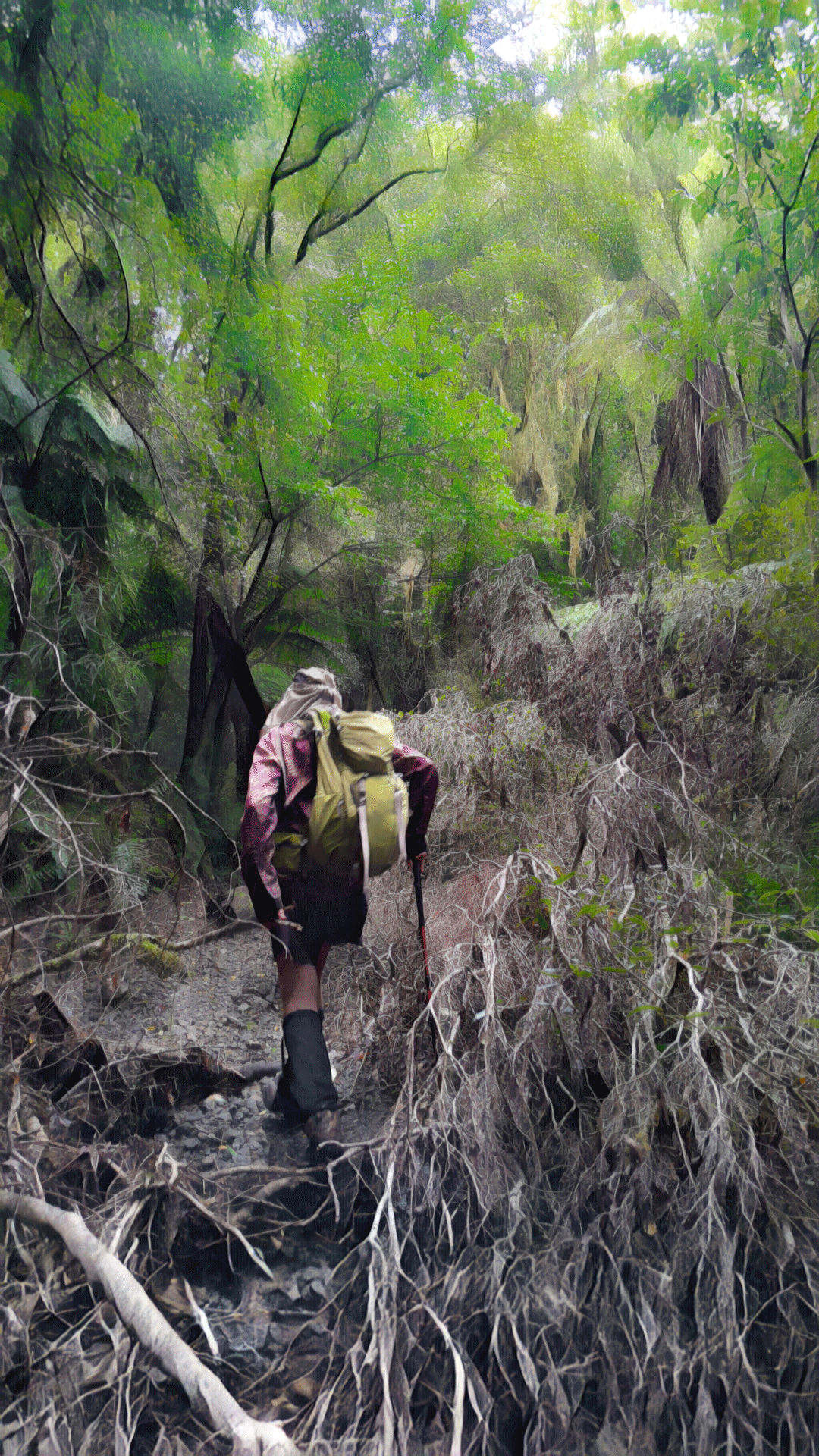 We initially found a trapline and started to follow it but decided to leave it and bush bash as it seemed to be heading in the wrong direction from what we wanted.