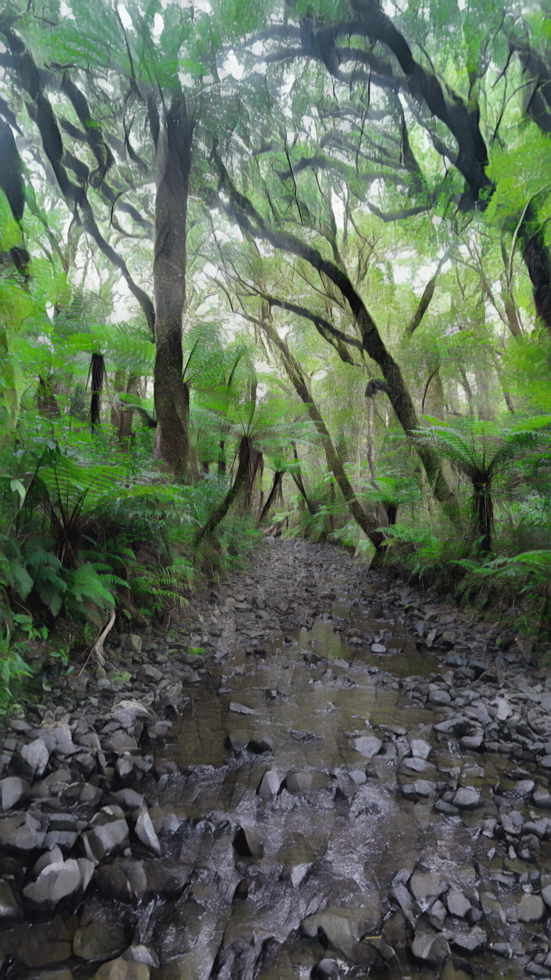 Tony had been partway up the creek previously and captured an amazing photo of the tree ferns and the shingle stream bed but since then the stream has changed due to floods.