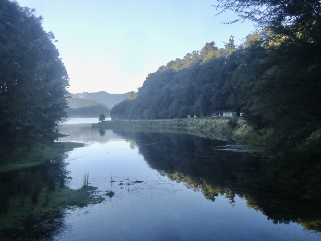On the way to Waikaremoana Holiday park we stopped in Napier for a delicious dinner of pizzas, Pad Thai and kebabs. We arrived at the holiday park at around 10pm. We stayed there in cabins and all went off to bed soon after arriving, after such a long drive. The holiday park has great facilities – a modern shower/ toilet block, a large modern kitchen/ dining area and a range of accommodation types. They also sell petrol, have a small store on site and it’s just a 15 minute drive to the start of the track (Onepoto end).