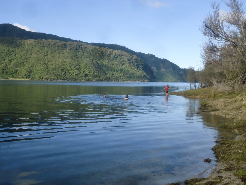 When planning the trip, the leaders were advised that the carpark at the Hopuruahine Landing end of the track (which is the true endpoint of the Great Walk) was closed. That’s why we had opted to catch a water taxi back to the start of the track at Onepoto. Houpruahine Landing is about a 1 1/2 hour walk further on from Whananui, and is the closest spot to the end of the track that the water taxi company can pick people up from. The water level at Hopuruahine Landing is too low for the boat.