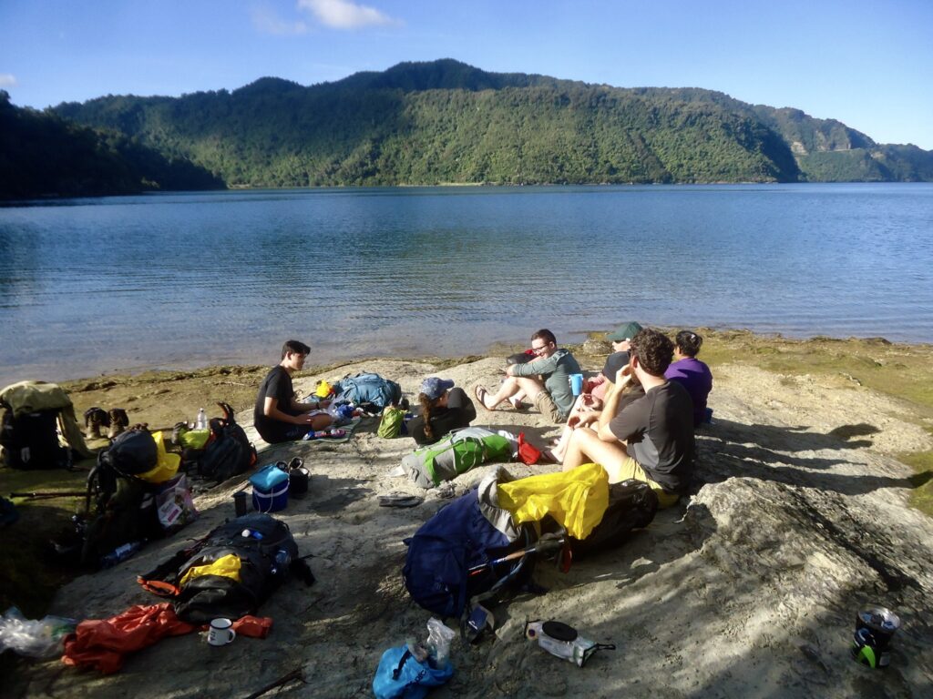We arrived at Panekire Hut at 2:30pm. Around dinner time, the hut warden, Anthony, introduced us to Lake Waikaremoana with a mihi and sang a waiata. He invited all groups at the Hut that night to do the same. Elizabeth said a mihi on our behalf, and we sung the waiata Tai Aroha.