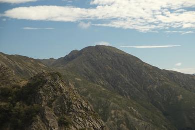 Spending a moonlit night at a convenient DOC campsite, we upped sticks and got ourselves to the end of Leatham Road and tramping by 10 am. After a short tramp along the 4WD track following the very pretty Leatham River valley, we followed the Wye Track up to and along the ridge that would take us to our campsite for the first (and third) night of the trip. This entailed a long steady climb from below 500 m to a height of 1149 m, and with some ‘powerful undulations’, which had our party puffing in no time.