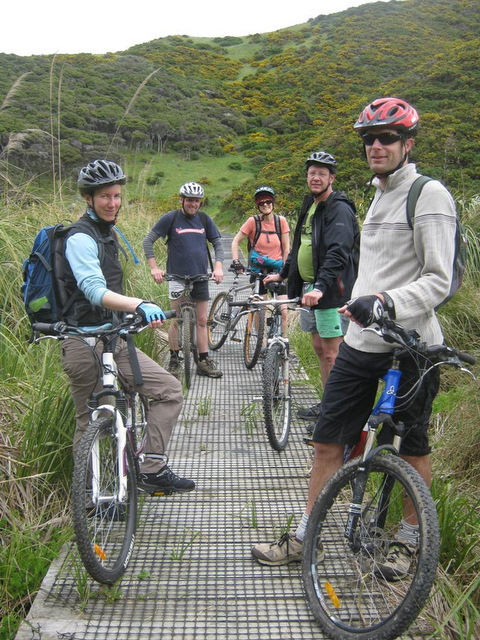 All 8 of us started the ride by Lake Kohangapiripiri on a gravel track, which soon turned into long grass. This surprised me. It was only a slight incline for 10min then, when it got a bit steeper, 5 of us biked on for another 5min to get to the old lighthouse, which stands at 98m above sea level.