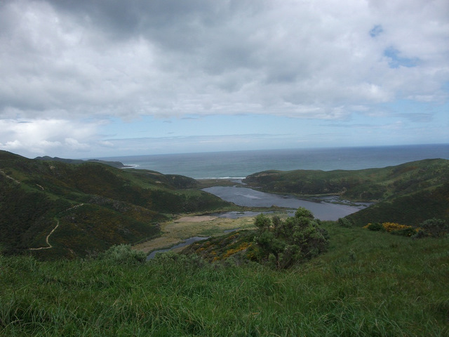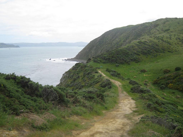 After about 30 min (7 kms), we got to the Pencarrow Lighthouse so we knew the entrance to the lakes was not far around the corner.