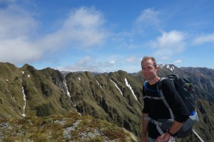 Tanked up with water on an increasingly hot day and with two humps to go, we scooted along Daphne Ridge to grind up the gateway to Sawtooth ridge, Tiraha (1668m). Backward glances framed glinting tarns set in majestic mountain scenery – once you wiped the sweat out of your eyes that is, it is a steep climb.