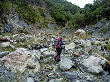 Crossing South Saddle was definitely windy but nothing like the day before and there was no rain and we were soon back down in the Orongorongo Valley having a rest in the shelter from the wind.