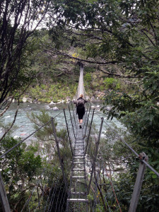 Unnaturally for the Tararuas, we had clear skies and virtually no wind as we walked first to the Rocky Lookout, then on up the Gentle Annie track. We stopped at the Totara Flats track junction for lunch before continuing the relatively easy walk down towards the large swing bridge and then Totara Flats Hut.