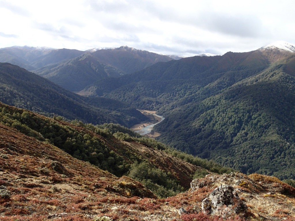 By lunchtime we were still below the bush line, tracking along the narrow ridge occasionally glimpsing the Waipakihi River on our right.